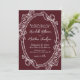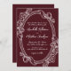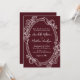 Dark Burgundy Filigree Frame Wedding Invitation. Add a rich, timeless feel to your wedding with this elegant and romantic design. The invitation features deep burgundy red backgrounds on both sides, creating a bold, dramatic base that still feels classic and refined.