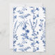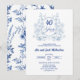 An elegant design featuring a blue Victorian crest frame, elegant calligraphy and a blue nature toile on the back of the invitation. Customize the details for a unique and chic Wedding Anniversary Celebration.