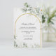 Create a beautifully coordinated wedding with this elegant green and white watercolor floral design. Soft botanical leaves, delicate white blossoms, and a refined gold arch frame come together to form a timeless and romantic aesthetic. Easily customize names, dates, and details to craft a cohesive look for your big day.