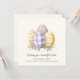 Celebrate the joy of Easter with this beautiful watercolor floral design. Featuring a delicate arrangement of tulips, daffodils, and lavender, this design evokes the fresh beauty of spring. The soft pastel colors create a serene and elegant atmosphere, perfect for sending warm wishes to loved ones. This design is ideal for any Easter gathering or greeting, adding a touch of natural charm and sophistication to your celebrations. Share the spirit of renewal and happiness with this exquisite Easter stationery.