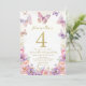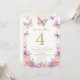 Convite Elegant Watercolor One 4th Birthday Butterfly Gir