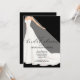 A bride in her wedding gown and veil with your details in chic lettering on a black background, or any color you choose, these invitations are perfect for bridal shower invitations. MATCHING items in our collection.