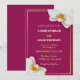 Invite your loved ones to celebrate your special day with this sophisticated and vibrant magenta wedding invitation. This design features a rich, deep berry-toned background that provides a stunning contrast to the crisp, white orchid blossoms that frame the corners. A delicate metallic-look gold border adds a touch of luxury and refinement to the overall presentation.
