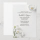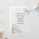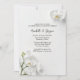 This elegant floral wedding invitation features realistic 3D style white orchids. The flowers are placed in the top right and bottom left corners, and are photo-realistic, with the orchids creating delicate shadows. It's a perfect wedding invitation for any color scheme and and season.