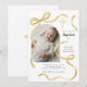 Convite Elegant Yellow Bow Baptism Baby Photo Arch Cross