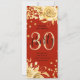 Elegante Glam Dourado Red Floral Glitter aniversário de 30 anos modelo Script com texto de cardápio de festa, arranjos florais, confete de brilho e script de tipografia moderno.