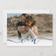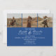 Elegante cor azul Chic do ano e caligrafia clássica branca elegante convite para casamento e monograma de iniciais. Com um roteiro moderno e moderno, adicione 4 de suas fotos.