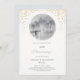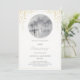 Celebre uma história de amor atemporal com este convite de 50º aniversário de casamento lindamente elaborado. Com uma paisagem urbana romântica sob uma chuva suave e enevoada, e um casal sob um guarda-chuva vermelho, este design captura a magia de uma jornada de uma vida juntos. A moldura circular da foto é rodeada por delicados detalhes em folha de ouro, adicionando um toque de luxo e elegância — perfeito para um aniversário de bodas de ouro.