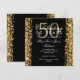 Modelo de convite de festa de aniversário de casamento de 50 anos elegante com brilhos dourados. Com luzes douradas, cordão dourado e brilhos dourados.
