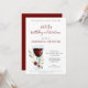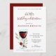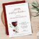 Elegante 60º aniversário do Convite de aniversário Surpresa de Vinho Vermelho. 60º convite de aniversário para ela ou para ele. Convite com um copo de vinho tinto, rosas e galhos em fundo branco. O texto é totalmente personalizável - personalize-o com o seu nome, qualquer idade - 90 40º 50º 70 a 100º, data e hora, localização e RSVP. Você pode usar o convite para a festa de aniversário surpresa ou apagar o texto surpresa.