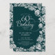 Emerald verde prata floral 60º convite de aniversário. Design elegante com rosas, folha de falso prata e letra de script de tipografia. A Trendy convida o cartão perfeito para uma festa de na moda. Pode ser personalizado para qualquer idade. Personalize com seus próprios detalhes. Impressos convites Zazzle ou modelo de impressão digital instantânea para download.
