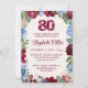 Convite Elegante 80 Birthday - Design Floral Burgundy