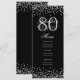 Convite Elegante 80 Birthday Menu Silver Confetti Black