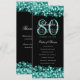 Convite Elegante 80 Birthday Program Turquoise Obrigado
