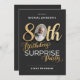 Programa Elegante do Partido da Surpresa de Aniversário do 80. Um design elegante com texto claro e fácil de ler, garantindo que todos os detalhes importantes sejam transmitidos sem esforço. A adição de acentos de folha esmaecida em ouro deslumbrante contra um pano de fundo de preto cria um efeito visual impressionante, acrescentando um toque de luxo ao olhar geral. Com sua estética moderna e seu charme eterno, este convite estabelece a palco para uma celebração memorável, deixando seus entes queridos entusiasmados e antecipando ansiosamente as surpresas que esperam. Escolha esta design para fazer uma declaração na moda e criar uma experiência inesquecível para os seus convidados.