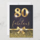 Convite de Aniversário Elegante de Na moda Negro e 80 Dourado. Design, recursos de brilho dourado e arco cintilante dourado na frente, bem como folha de ouro 80. Adicione detalhes da parte atrás.