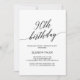 Este elegante convite de 90 de caligrafia negra é perfeito para uma simples festa de aniversário. A design neutra apresenta uma carta minimalista decorada com tipografia romântica e caprichosa.