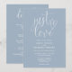 Este convite de casamento elegante de roteiro azul empoeirado pode ser personalizado com todas as suas informações especiais sobre o dia do casamento, incluindo seu RSVP, acomodações e detalhes adicionais. Projetado por Thisnotme©