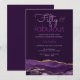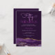 Convite de Ágata para Festa de Aniversário de 50 anos Fabulosos 50 apresenta uma fatia de geodo de ágata roxa profunda com bordas em texturas de aquarela e acentos de brilho dourado falso em um fundo cinza escuro carvão. Os textos são uma combinação de cores roxas claras e brilhantes e podem ser personalizados ou alterados usando o menu de edição.