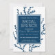 NewParkLane - Convite de café da manhã de noivado náutico moderno, apresentando um padrão elegante de algas marinhas azul-teal/índigo sobre um fundo branco.