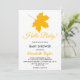 Este elegante chá de fraldas de outono é perfeito para um chá de fraldas de outono moderno. A simples design apresenta folhas amarelas de outono com elegante tipografia preta e amarela sobre fundo branco.