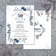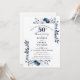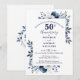 Este convite elegante de aniversário de bodas de ouro de 50 anos, floral azul marinho, pode ser personalizado com suas informações em tipografia moderna. Criado por Thisisnotme©