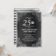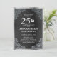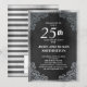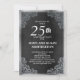 Convite de aniversário de casamento de 25 anos preto e prata elegante e ornamentado.
