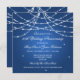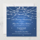 Elegante design de convite de festa de aniversário de 50 anos de casamento com motivo de Corda De Estrelas Azul sofisticado, nome e data personalizados e texto adicional. Impressione sua família e amigos com este design moderno e sofisticado. Totalmente personalizável! Fácil de usar e fácil de personalizar.