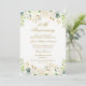 Convites elegantes de aniversário de casamento com um design suave de aquarela floral em tons de dourado, creme, limão e verde. O texto clássico em dourado pode ser totalmente personalizado. Coleção de Casamento Correspondente na Loja Little Bayleigh!