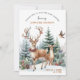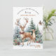 Bem-vindos ao seu pequeno com este animador Convite para Chá de fraldas da Woodland de inverno Imprimível com uma cena aquática de uma floresta de pinheiros de neve e animais florestais (oh querido) vestindo Enfeites de natal festivos. Perfeito para um chá de fraldas celebrado no feriado! Os detalhes estão numa mistura de escrita manual moderna e tipografia elegante clássica. Personalize este convite alegre com os detalhes do seu partido de forma fácil e rápida; pressione o botão personalizar para reorganizar e formatar o estilo e a colocação do texto. Tem um bonito lado de trás verde-escuro com todos os detalhes em branco.