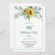 Convite Elegante Aquarela Flor de Girassol 90 de Aniversár