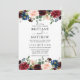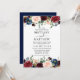 O Convite para Casamento Floral de Aquarela Elegante inclui rosas de entrelaçamento, flores azuis, rosas cor-de-rosa, flores vermelhas e verde botânico - Marinho Blue Back