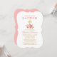 Convite Elegante Aquarela Rosa Floral Batismo Dourado