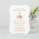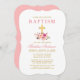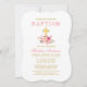 Convite de Batismo Floral Rosa Elegante Aquarela inclui rosas cor-de-rosa e folhagens. Cruz Dourada. Estilo de Suporte.