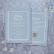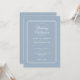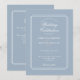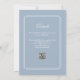 Linhas geométricas elegantes enquadram suas informações personalizadas de casamento em tipografia sofisticada em um fundo azul poeirento. Com seus detalhes e código QR do site de casamento no verso. Projetado por Thisisnotme©