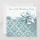 A mulher elegante, damasco azul, cinquenta convite de aniversário. Este belo convite de aniversário branco e azul lacrimejante é facilmente personalizado para o seu evento adicionando detalhes do evento, estilo da fonte, tamanho da fonte e cor e texto.