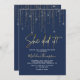 Convite Elegante Azul Dourado Espelhado Ela conseguiu Grad