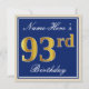 Convite Elegante, Azul, Dourado Falso Aniversário de 93 an