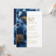 Convite Elegante Azul E Dourado Floral 50º Aniversário