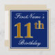 Convite Elegante, Azul, Faux Dourada 11 Aniversário + Nome