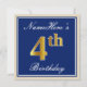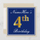 Convite Elegante, Azul, Faux Dourado 4º Aniversário; Nome