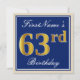 Convite Elegante, Azul, Faux Dourado 63º Aniversário + Nom