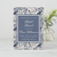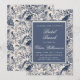 NewParkLane - Convite de almoço de noiva sofisticado e atemporal, com um padrão floral francês vintage 'toile fleurie' ou 'toile de jouy' com pássaros, em belas tonalidades de índigo/azul, desde azul cinzento até um azul pastel suave e bege/branco esbranquiçado.