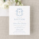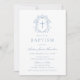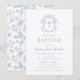 Convite Elegante Azul Floral Vintage Cruz Batismo