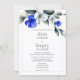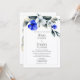 © Socialite Designs Inc. & LICENCIADOS. Belo convite de casamento com flores azuis reais e brancas. O convite é emoldurado por uma borda cinza-prata. Um convite elegante para um casamento de primavera, verão, outono ou inverno. Por favor, entre em contato com a Socialite Designs se desejar ter outros produtos correspondentes a esta coleção.