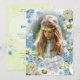 Convite Elegante Azul & verde Floral Primeira Comunhão