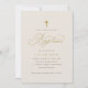 Esse convite batismo bege claro emparelha um layout limpo com guião dourado e uma cruz tradicional. Um design eterno, personalizado com o nome e os detalhes do seu filho — ideal para uma cerimônia de batismo simples e elegante.