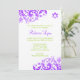 Um convite de na moda roxo e verde limão Bat Mitzvah. Apresentando bonito roxas cheias e estrelas de David. Entre em contato com o designer para adicionar o nome hebraico.