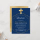 Convite Elegante Bautismo de Niños Con Cruz Dorada Azul Mã