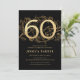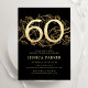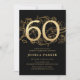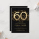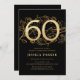 Elegante convite de aniversário preto de ouro 60º. Design feminina moderna personalizável, com sotaques botânicos rosas e ouro brilhante falso. Simples cartão de convite floral perfeito para uma comemoração de um na moda. Personalize com seus próprios detalhes. Impressos convites Zazzle ou modelo de impressão digital instantânea para download.